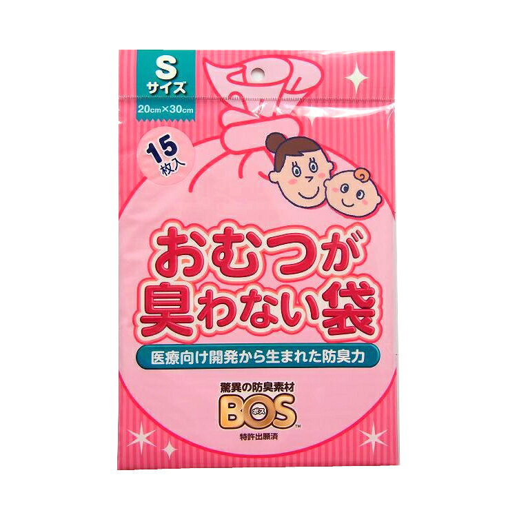 【メール便対応】驚異の防臭素材 おむつが臭わない袋 BOS 消臭袋 おむつ用袋 15枚入り Sサイズ 驚異の防臭素材