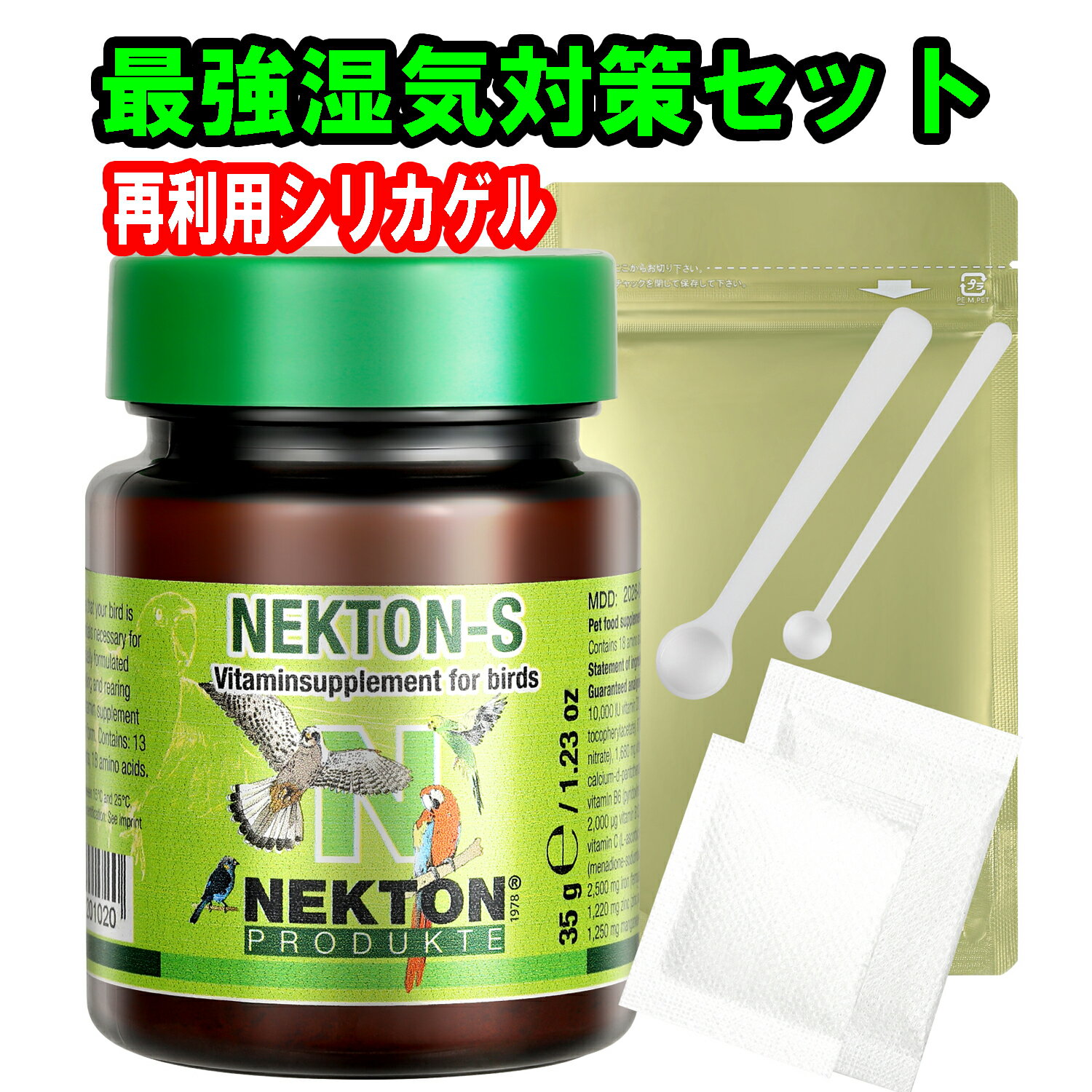 【最強湿気対策セット再利用シリカゲル】【真空保存】 ネクトンS NEKTON ネクトン 35g 栄養補助食品 サプリ 鳥餌 インコ 鳥用 ビタミン 栄養剤 健康食品 サプリメント 賞味期限2028.02.19 即日発送 日本語取扱説明書付き