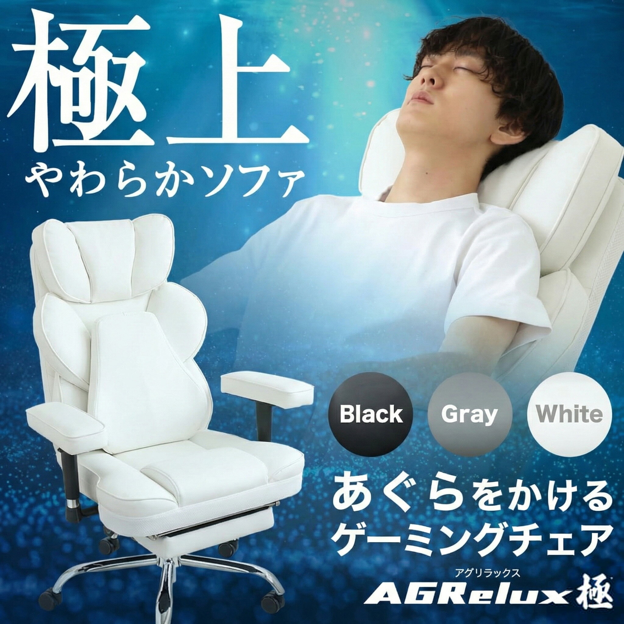 【新商品★まるでソファ】 ゲーミングチェア 白 肉厚クッション 幅広座面 オフィスチェア 椅子 パソコンチェア リクライニング チェア ソファ 腰痛 ゲームチェア ハイバック あぐら椅子 あぐら できる 椅子 デスクチェア 高さ調節 学習椅子 アグリラックス AGRelux 極