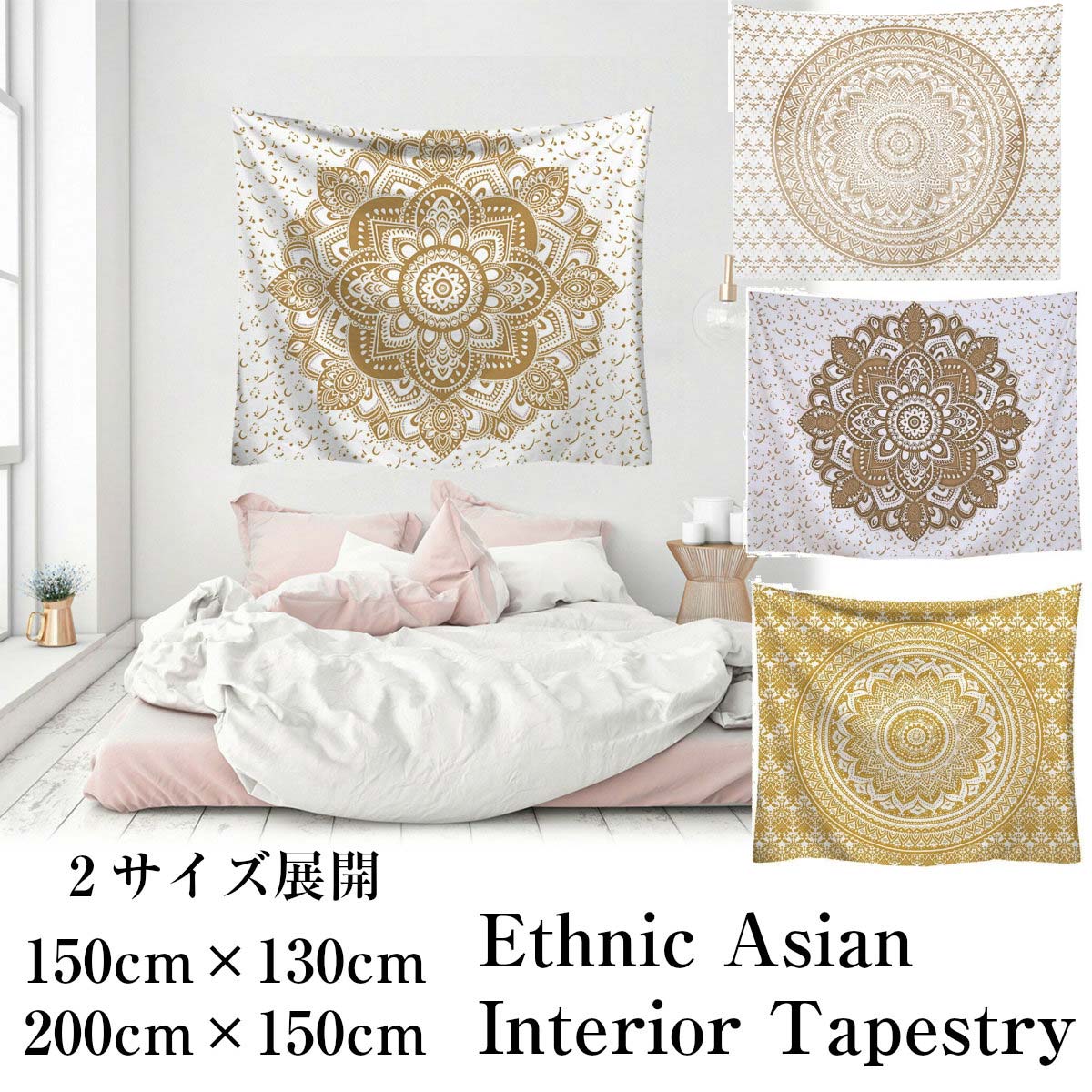 インテリア タペストリー おしゃれ 曼荼羅 エスニック アジアン ボヘミアン インド ヨガ ポスター テレワーク 背景 壁 布 目隠し ファブリックポスター 部屋 飾り ベージュ系 大きい 大判 長い zoom 背景布 映え パーテーション 動画撮影 横長