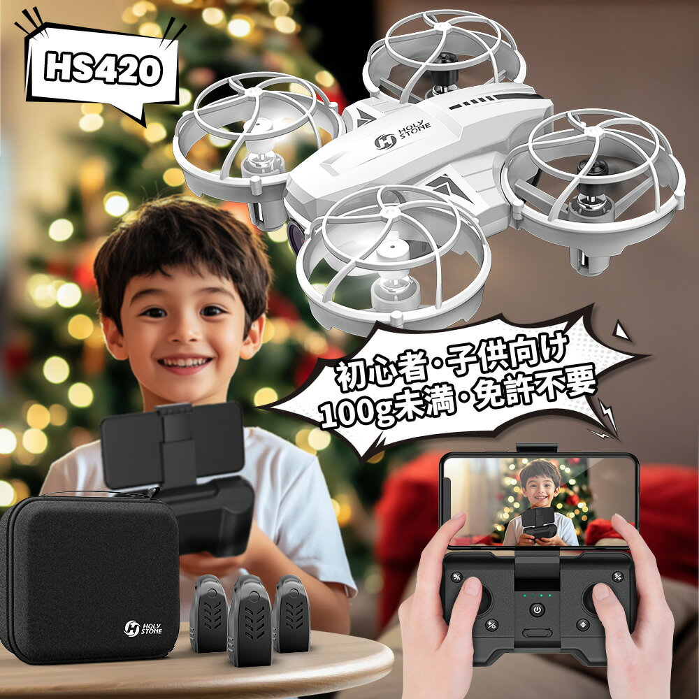 ドローン 手投げ 100g未満 カメラ付き 全面保護 手投げ Holy Stone 初心者 小型 子供 バッテリー3個 リアルタイム 高度維持 ホバリング 体感操作 ワンキーリターン 2.4GHz プレゼント モード1/2 国内認証済み プレゼント HS420 ホワイト