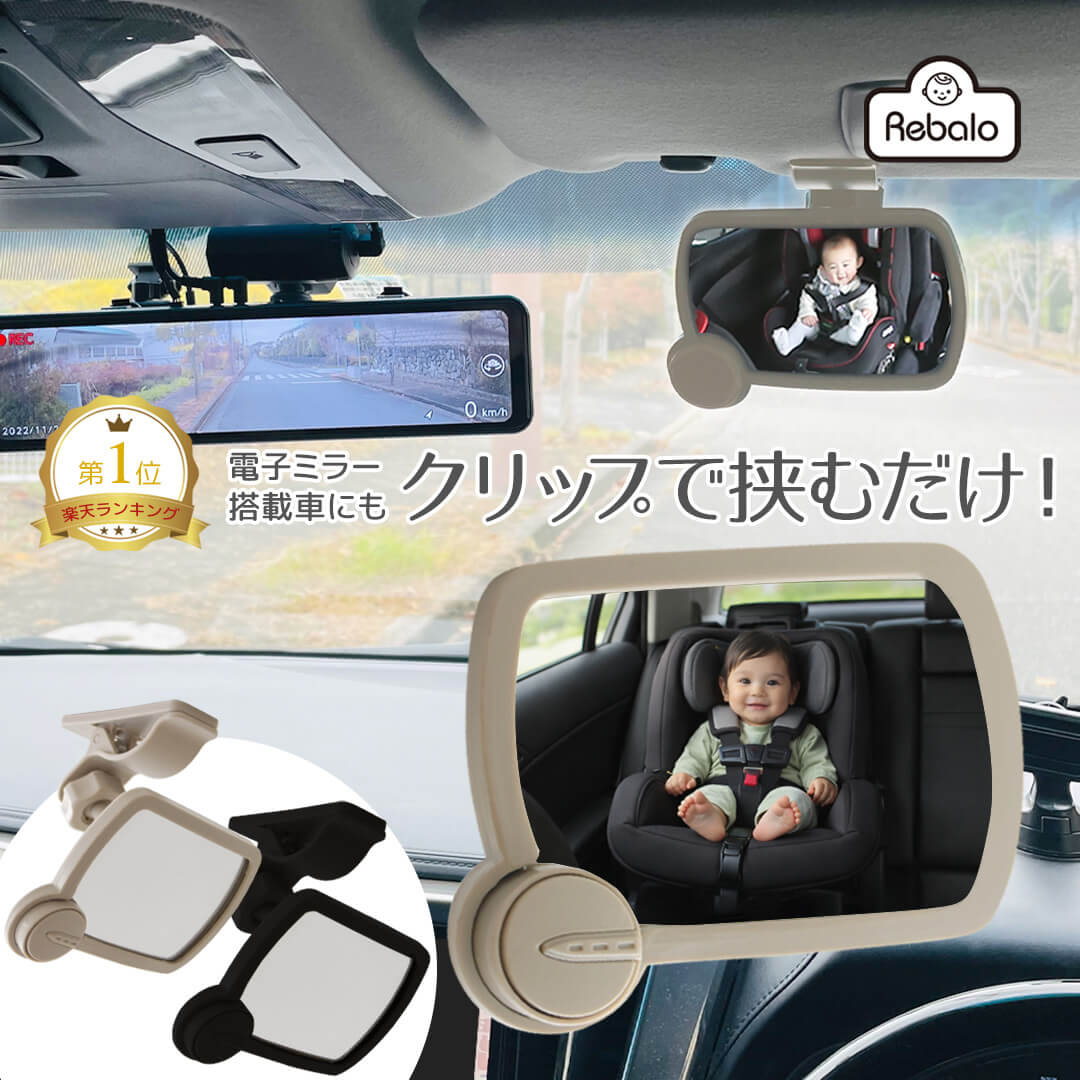 ベビーミラー 車用 ベビー ルームミラー インサイトミラー クリップミニミラー NR688 NR694 Rebalo 前向き バックミラー バック 車内 補助 ルーム サンバイザー ブラック 黒 グレー レビュー特典対象 送料無料 ※北海道・沖縄・離島除く RSL