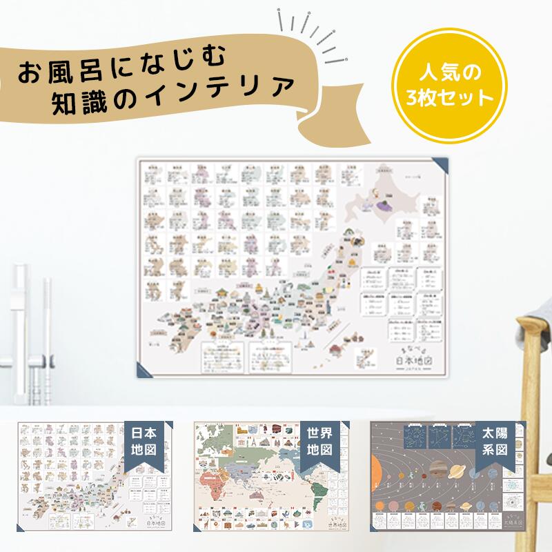 \4/4 20:00~先着100枚!半額クーポン/[楽天2冠]お風呂ポスター 日本地図&世界地図&宇宙地図 3枚セット 地図 おふろぽすたー 太陽系図 B3サイズ(横51.5cm×縦36.4cm) お風呂 おもちゃ 中学受験 地理 社会 地図 地球 防水 学習 教材 勉強 小学生