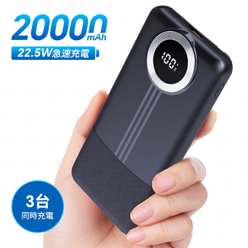 \爆安価格 1758円!モバイルバッテリー 大容量 20000mAh 22.5W 急速充電 軽量 小型 急速充電器 3台同時充電 iPhone/Type-Cケーブル内蔵 LCD残量表示 スマホ充電器 iPhone/Android 全機種対応 地震/災害/旅行/出張/緊急用などの必携品 PSE認証済