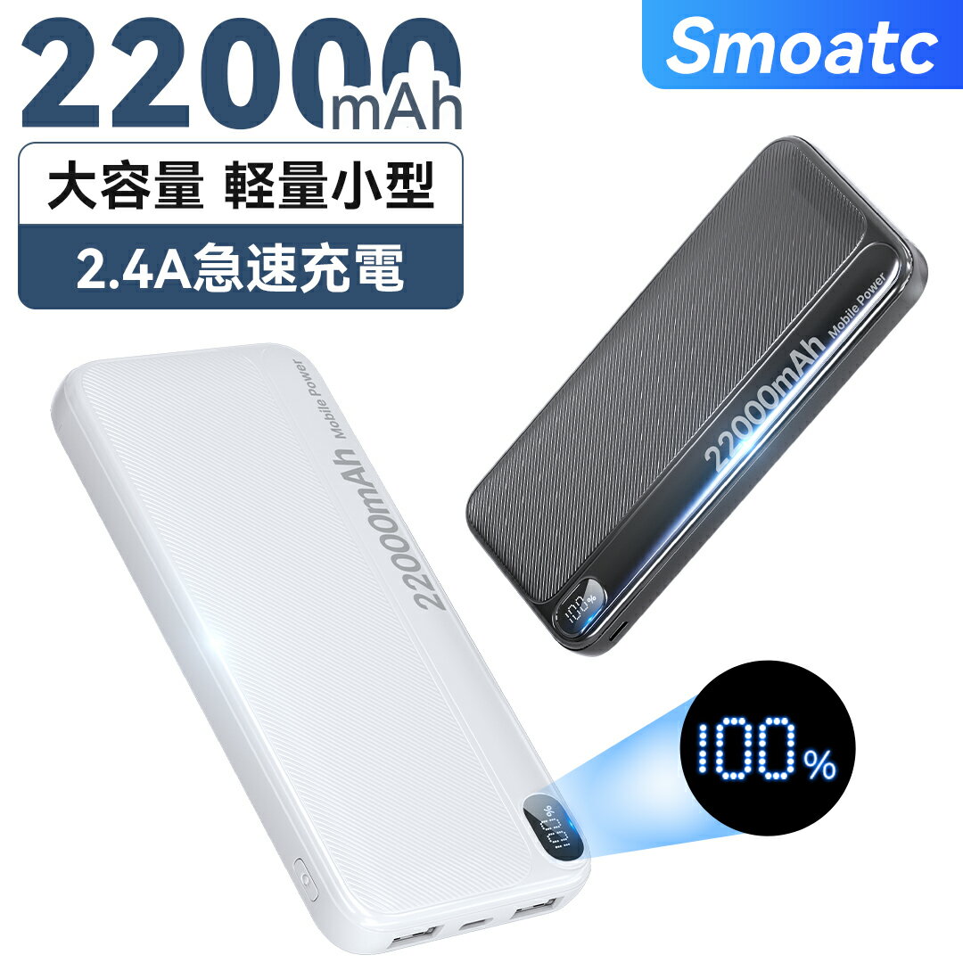 【20%OFFクーポンで1744円】モバイルバッテリー 小型 薄型 軽量 22000mAh大容量 2.4A急速充電 Smoatc 3台同時充電 携帯充電器 充電器 iPhone/Type-C LED残量表示 Android