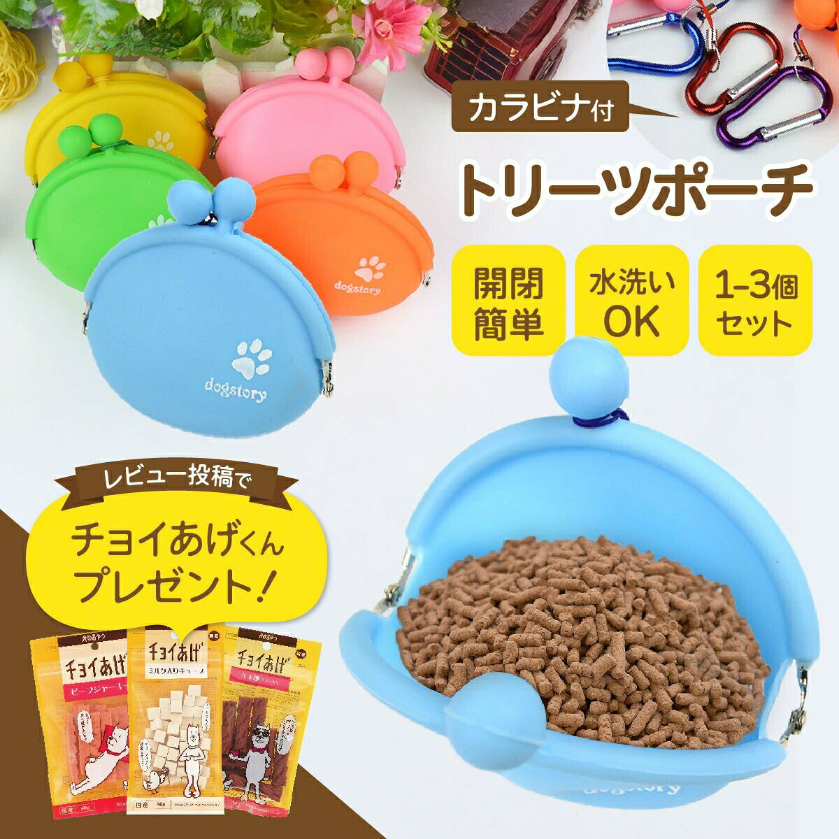 【ランキング入賞品】 犬 散歩 おやつ入れ トリーツポーチ シリコン 餌入れ おやつケース ペット がま口 カラビナ トリーツバッグ お散歩バッグ トレーニングポーチ マナーポーチ おやつバッグ デコピン おもちゃ